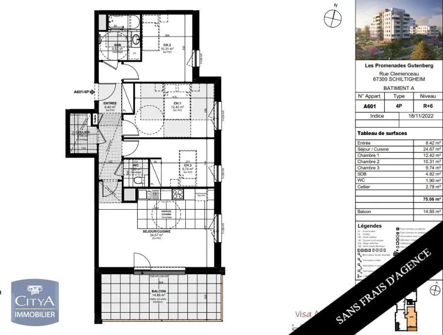 Appartement à louer 4 pièces 75.06m²