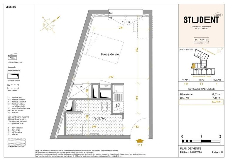 Bienvenue dans votre nouvelle retraite urbaine à PAYS-DE-LA-LOIRE, LOIRE-ATLANTIQUE (44), 44300, Nantes ! Cet appartement moderne de 1 chambres offre un espace de vie élégant et confortable. Le concept ouvert est parfait pour recevoir et la cuisine élégante est équipée d'appareils haut de gamme. Grâce à son emplacement privilégié, vous serez à quelques pas des meilleurs restaurants, boutiques et lieux de divertissement de la ville. À un prix abordable de € 525, cet appartement est une fantastique opportunité de profiter de la vie en ville à son meilleur. Ne manquez pas cette occasion – planifiez une visite dès aujourd'hui !