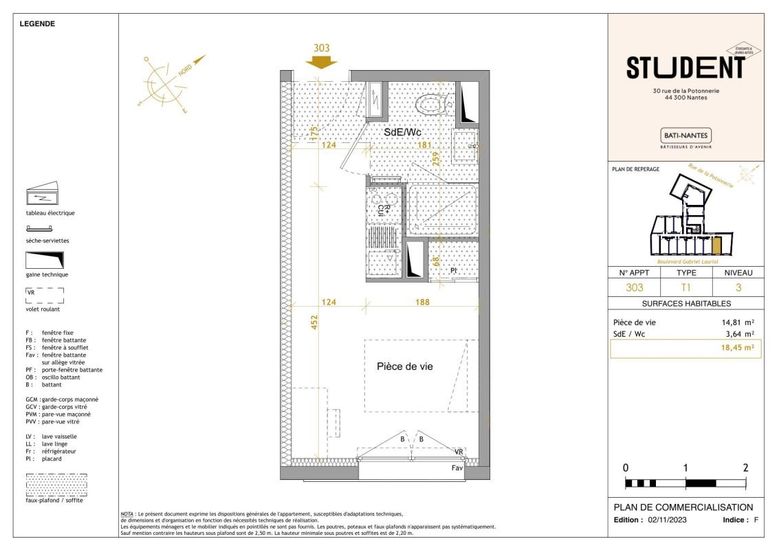 Location Appartement 1 pièce Meublé 18m² NANTES 44300